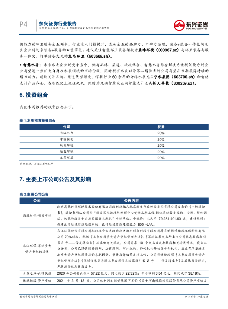 东吴证券:环保行业跟踪周报:【高能环境】受益金属价格上涨,【龙净环保】矿山绿电贡献业绩,重视水固红利价值