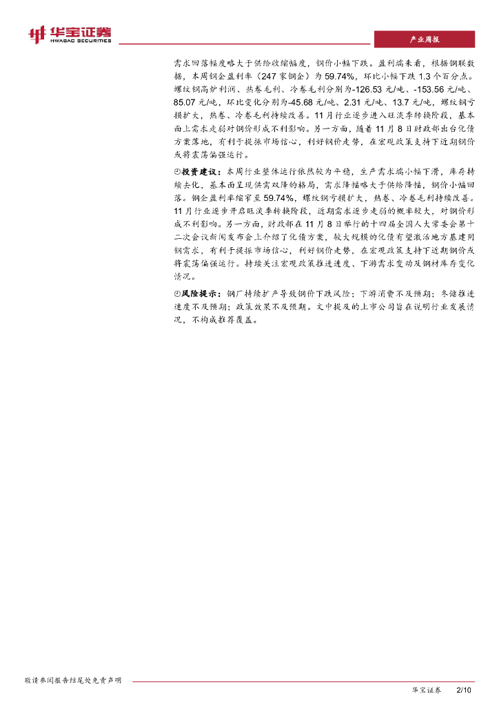 华宝证券:钢铁行业周度报告:本周钢材供需双弱,化债方案落地提振需求预期.pdf