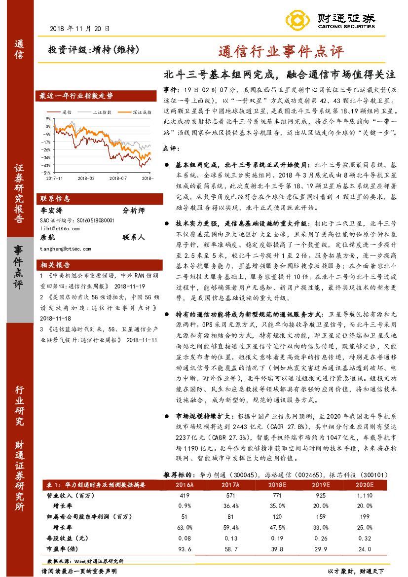 财通证券:通信行业事件点评:北斗三号基本组网完成,融合通信市场值得关注.pdf