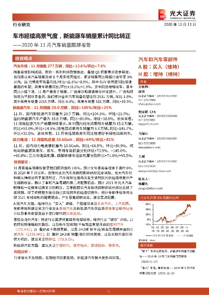 光大证券:2020年11月汽车销量跟踪报告:车市延续高景气度,新能源车销量累计同比转正.pdf