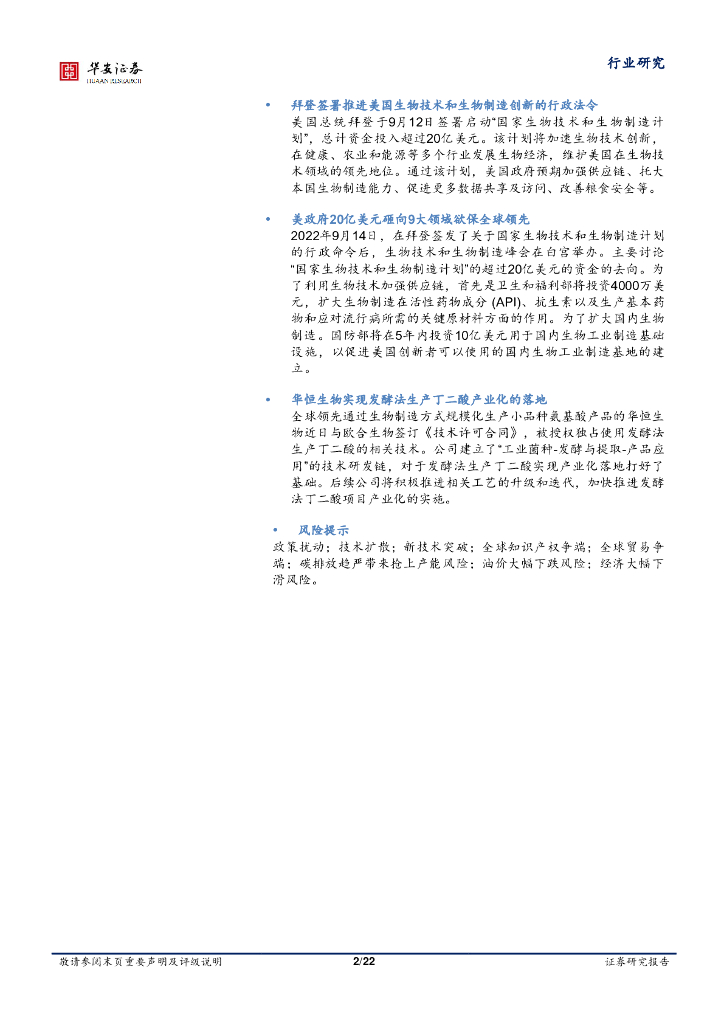 华安证券:合成生物学周报:拜登签署生物制造新政令,生物法丁二酸产业化提速.pdf