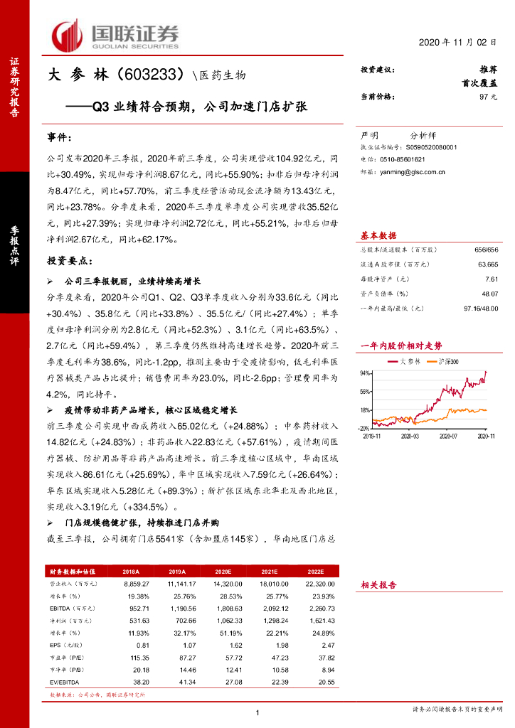 国联证券:大参林(603233)-Q3业绩符合预期,公司加速门店扩张.pdf