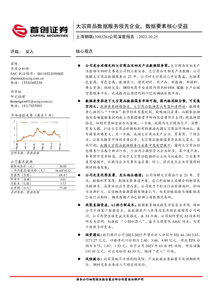 首创证券:上海钢联(300226)-公司深度报告:大宗商品数据服务领先企业,数据要素核心受益.pdf