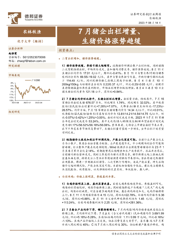 德邦证券:农林牧渔行业周报:7月猪企出栏增量、生猪价格涨势趋缓.pdf