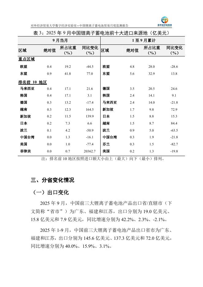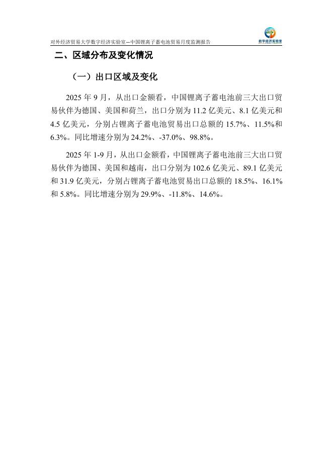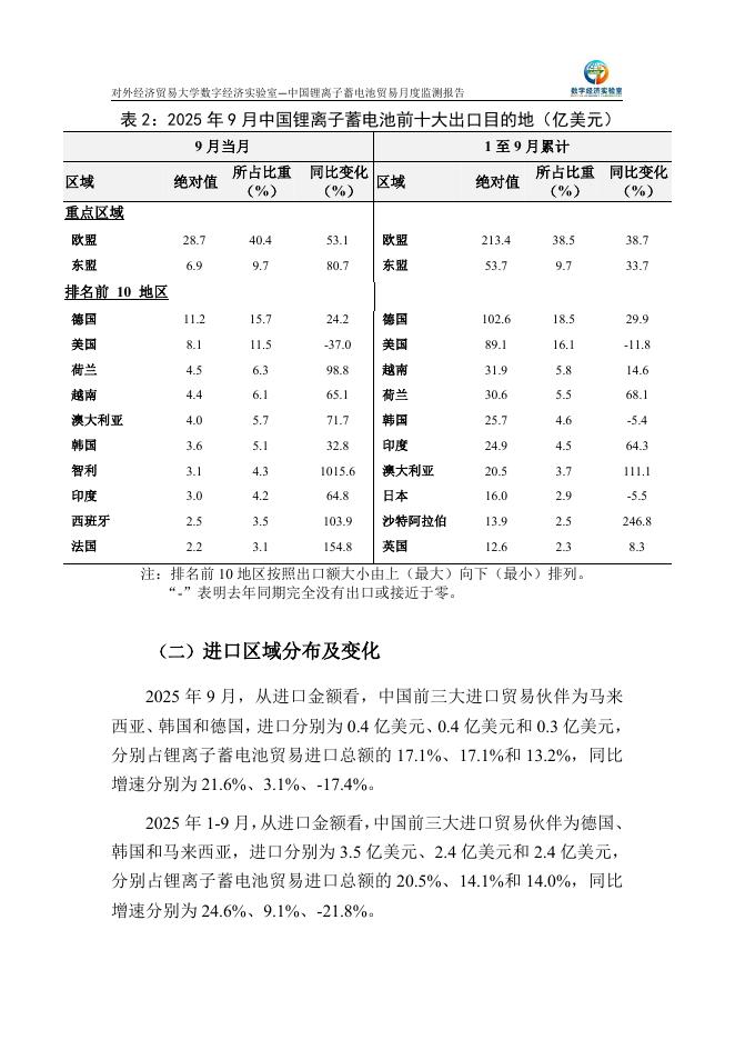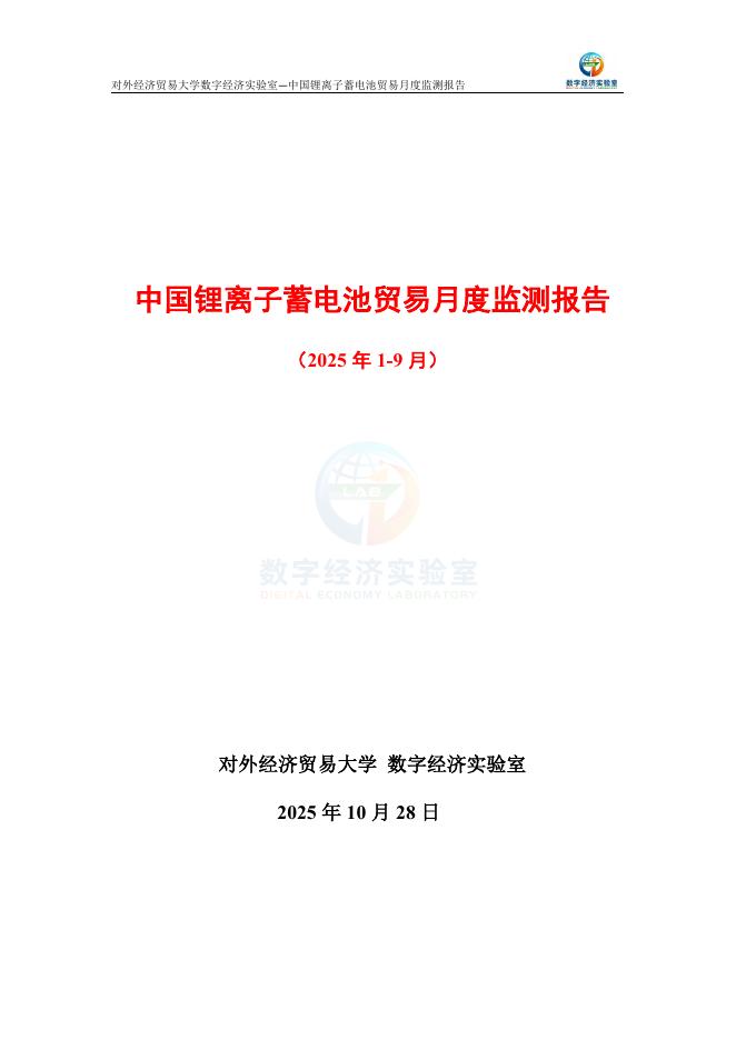 对外经济贸易大学:中国锂离子蓄电池贸易月度监测报告(2025年1-9月).pdf