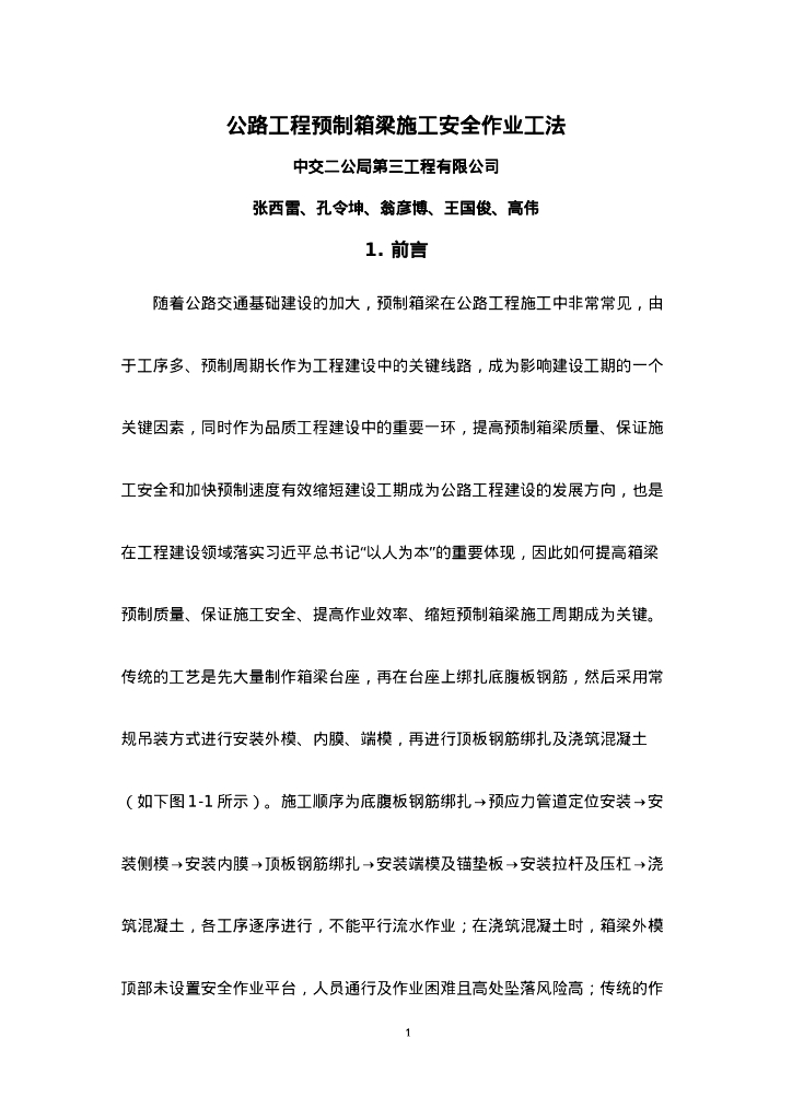 QHGF-2022009 公路工程预制箱梁施工安全作业工法.doc