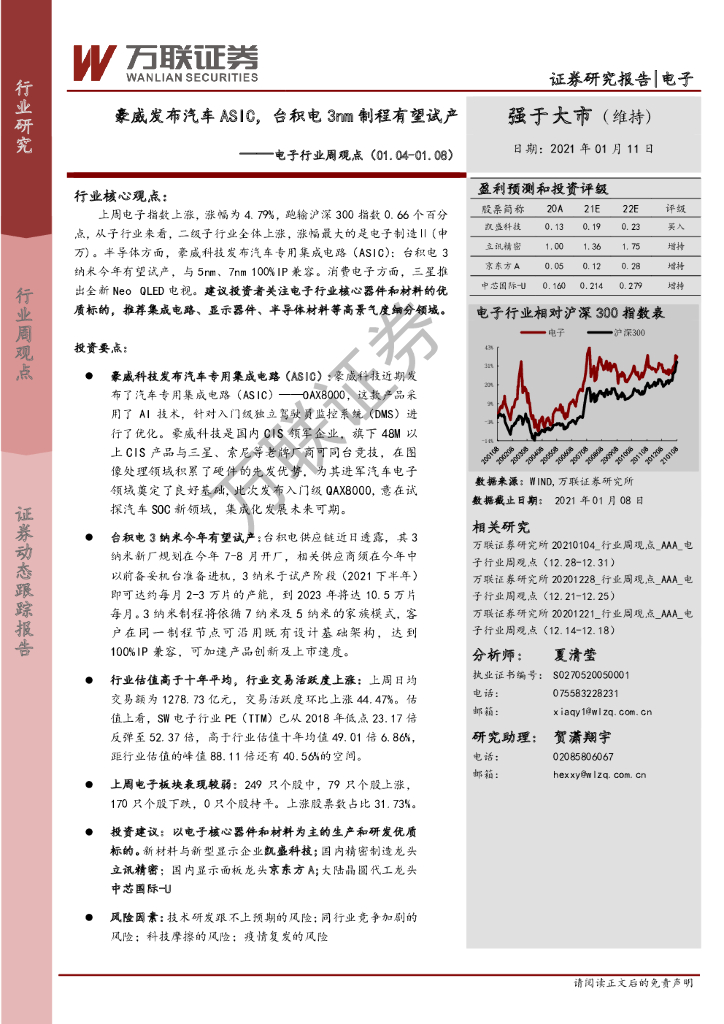 万联证券:电子行业周观点:豪威发布汽车ASIC,台积电3nm制程有望试产.pdf