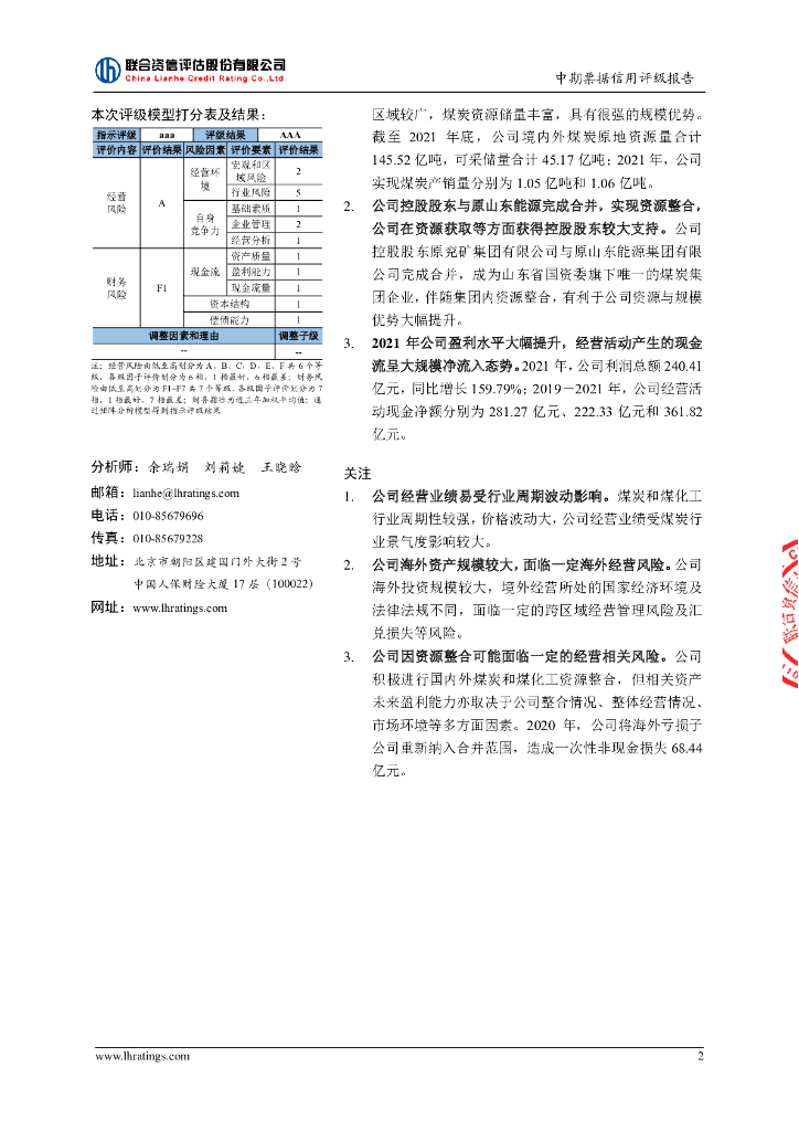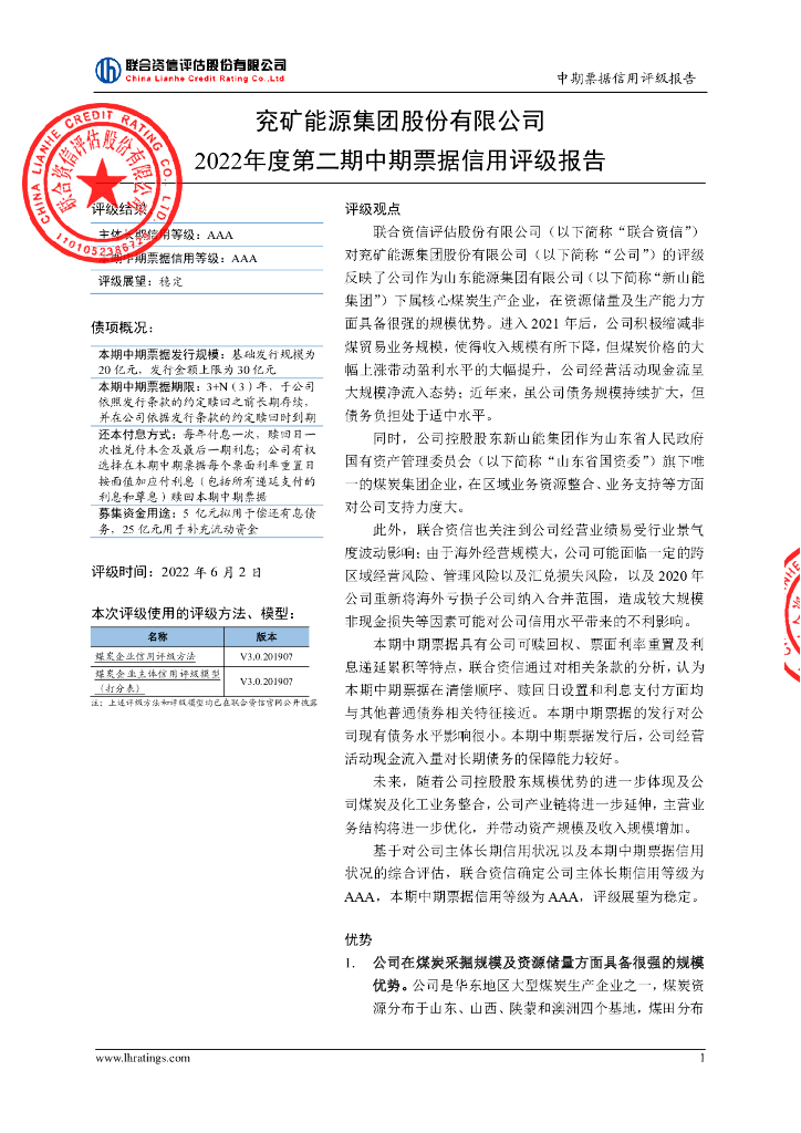 联合资信:兖矿能源集团股份有限公司2022年度第二期中期票据信用评级报告.pdf