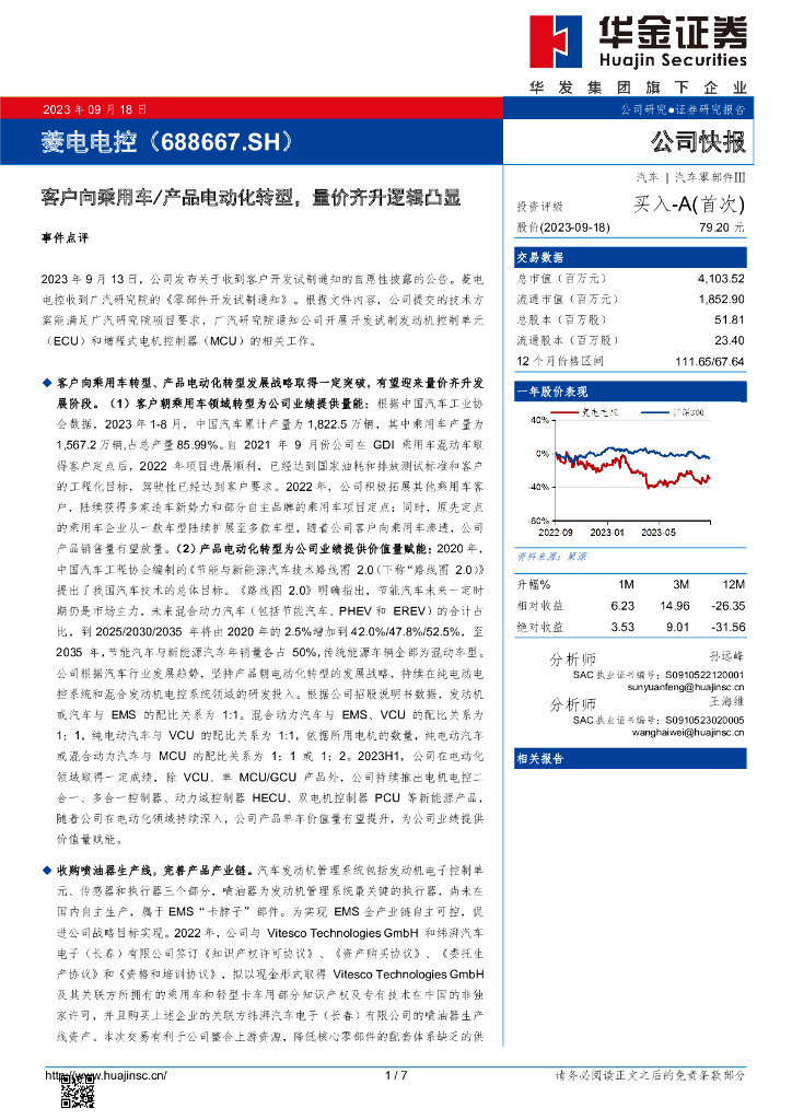 华金证券:菱电电控(688667)-客户向乘用车/产品电动化转型,量价齐升逻辑凸显.pdf