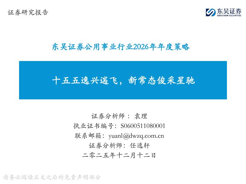 东吴证券:公用事业行业2026年年度策略:十五五逸兴遄飞,新常态俊采星驰.pdf