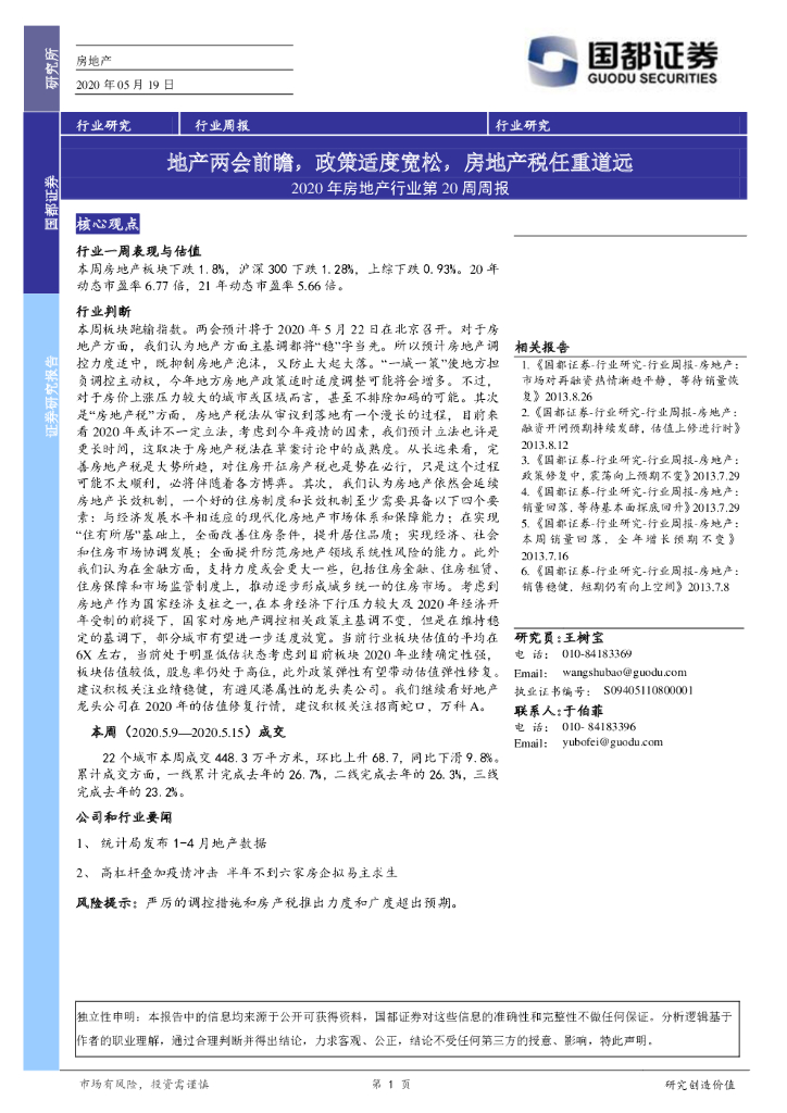 国都证券:2020年房地产行业第20周周报:地产两会前瞻,政策适度宽松,房地产税任重道远.pdf