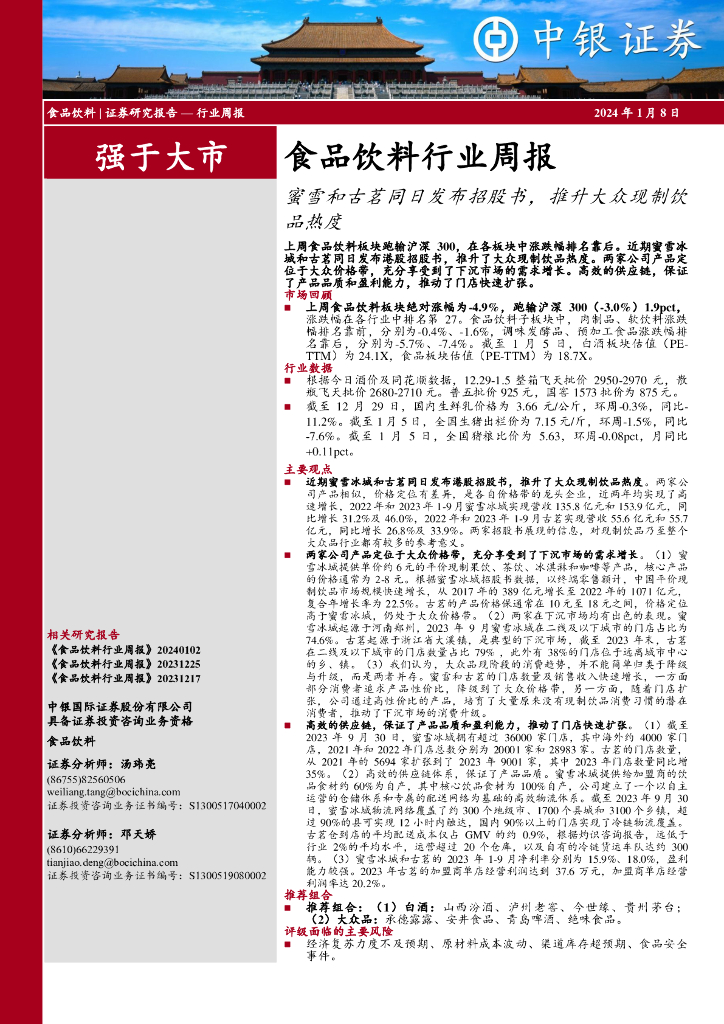 中银证券:食品饮料行业周报:蜜雪和古茗同日发布招股书,推升大众现制饮品热度.pdf