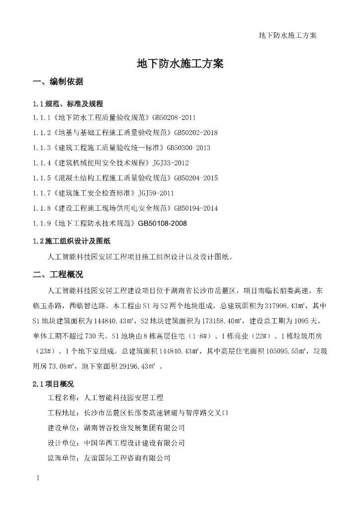 [国企]人工智能科技园住宅地下防水施工方案.doc