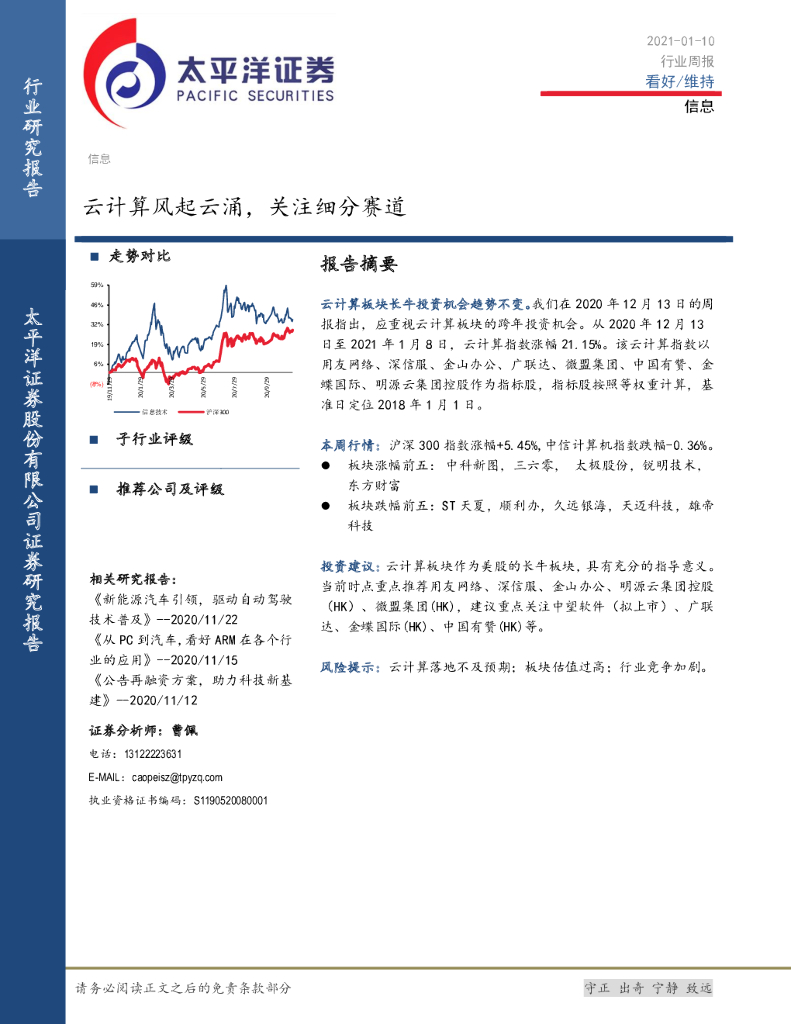 太平洋证券:信息行业周报:云计算风起云涌,关注细分赛道.pdf