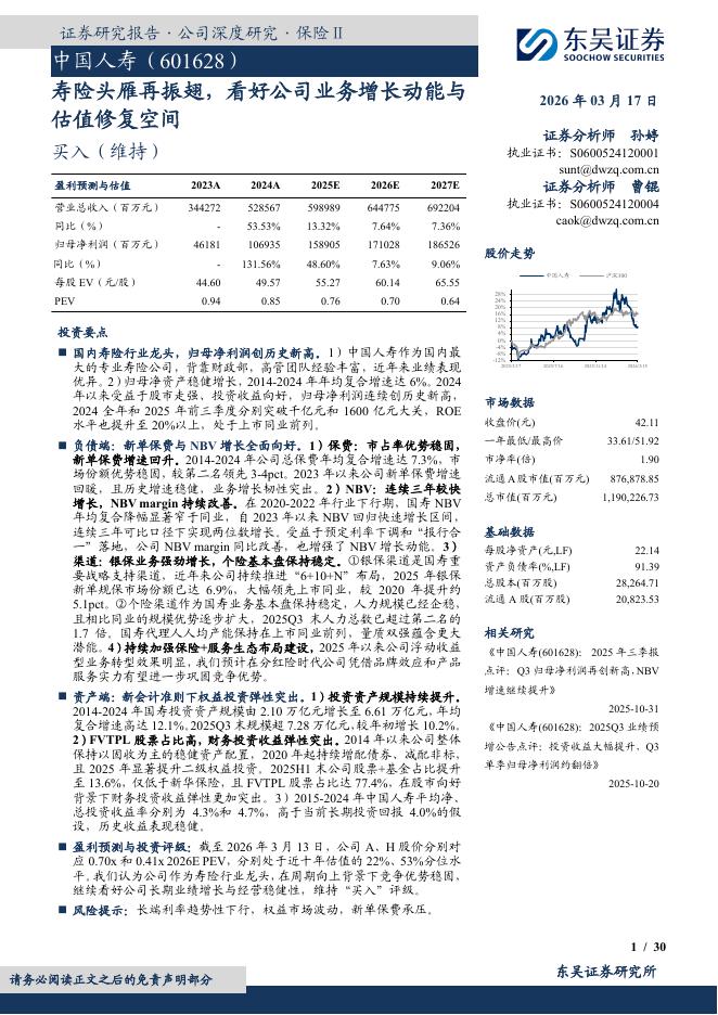 东吴证券:中国人寿(601628)-寿险头雁再振翅,看好公司业务增长动能与估值修复空间.pdf