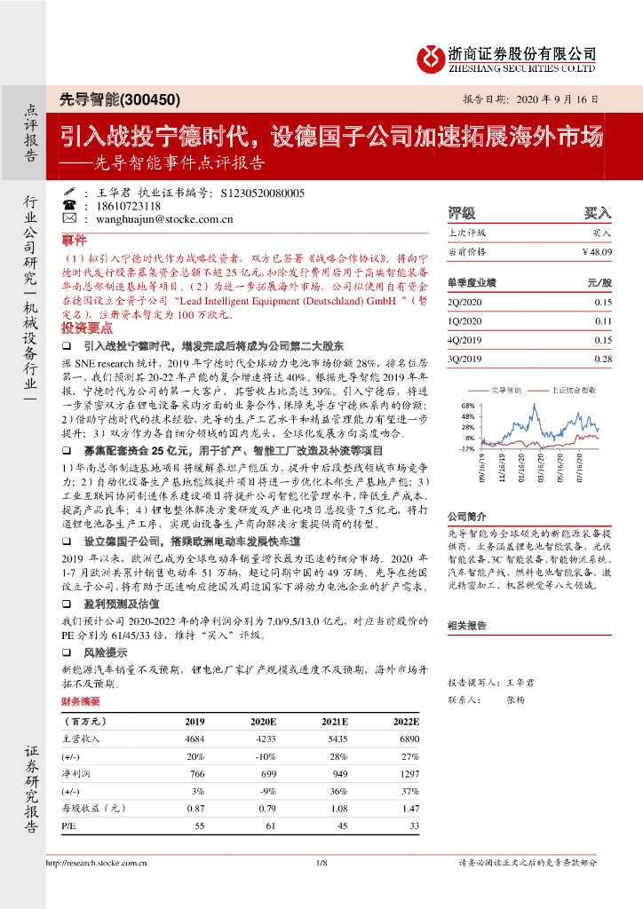 浙商证券:先导智能事件点评报告:引入战投宁德时代,设德国子公司加速拓展海外市场.pdf