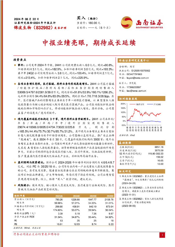 西南证券:锦波生物(832982)-中报业绩亮眼,期待成长延续.pdf