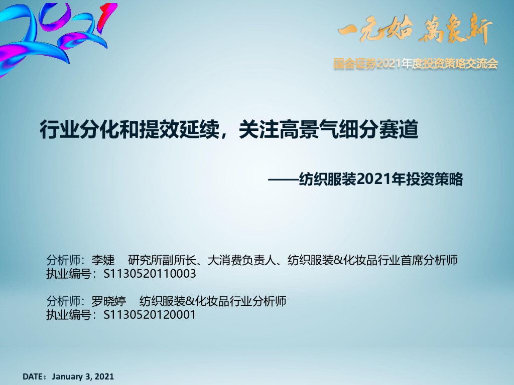国金证券:纺织服装2021年投资策略:行业分化和提效延续,关注高景气细分赛道.pdf