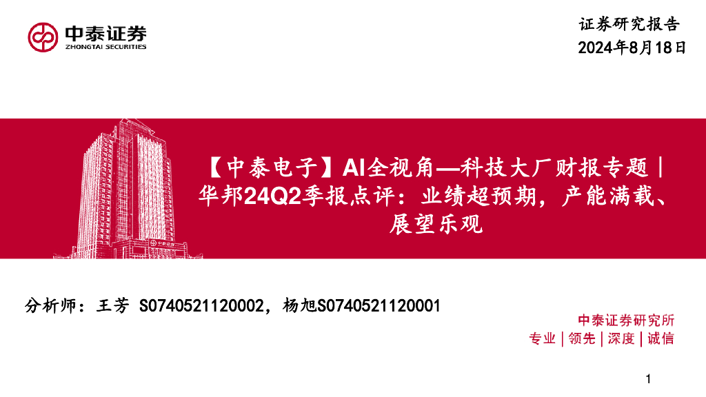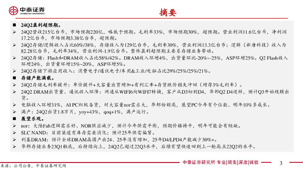 中泰证券:【中泰电子】AI全视角—科技大厂财报专题|华邦24Q2季报点评:业绩超预期,产能满载、展望乐观.pdf