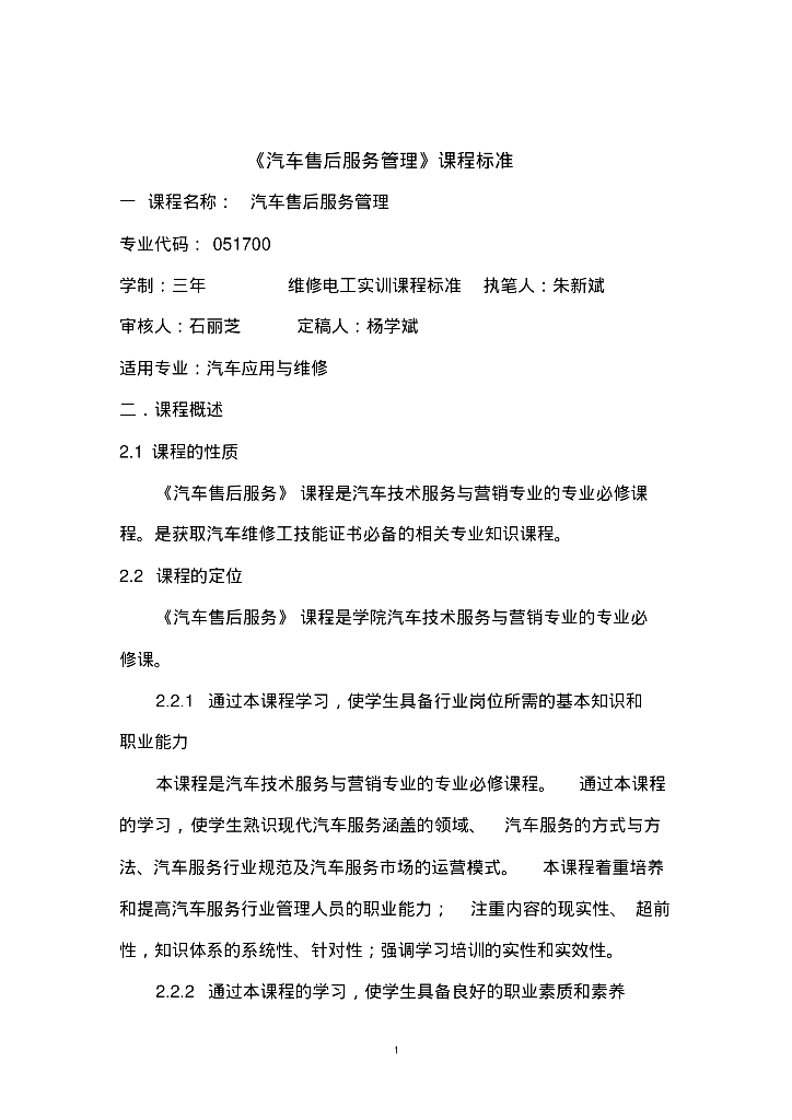 《汽车售后服务》课程标准.pdf