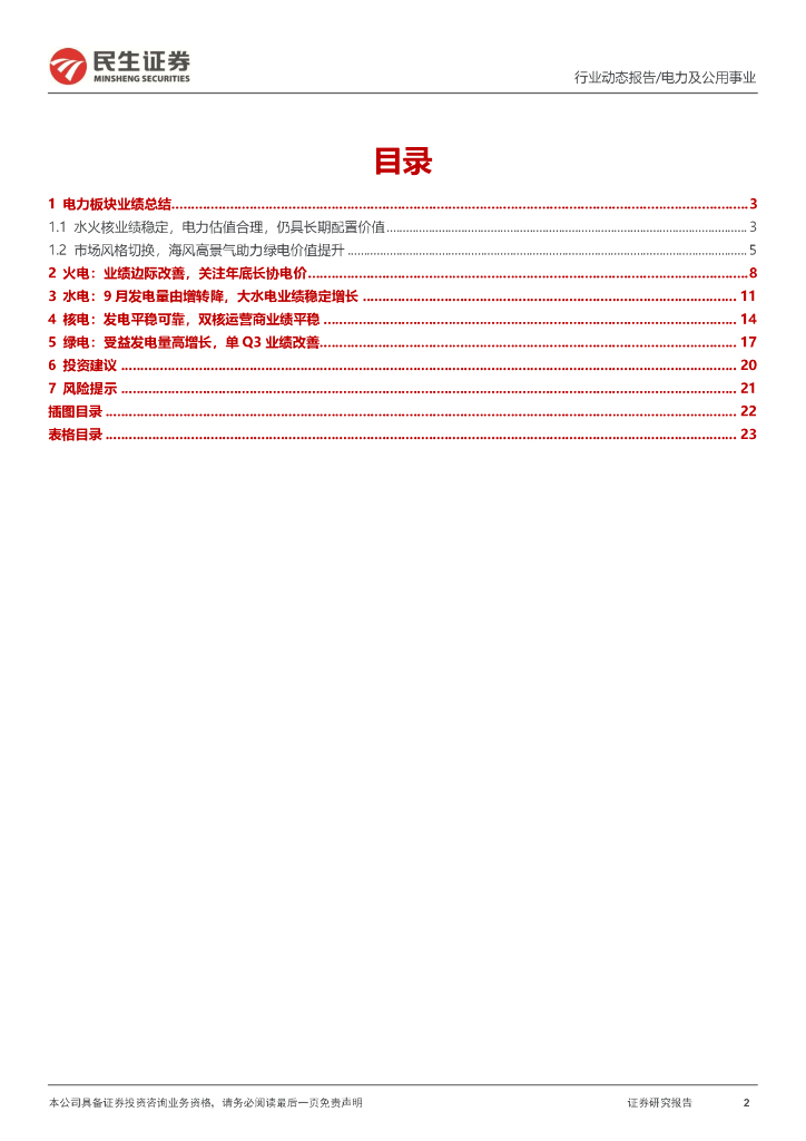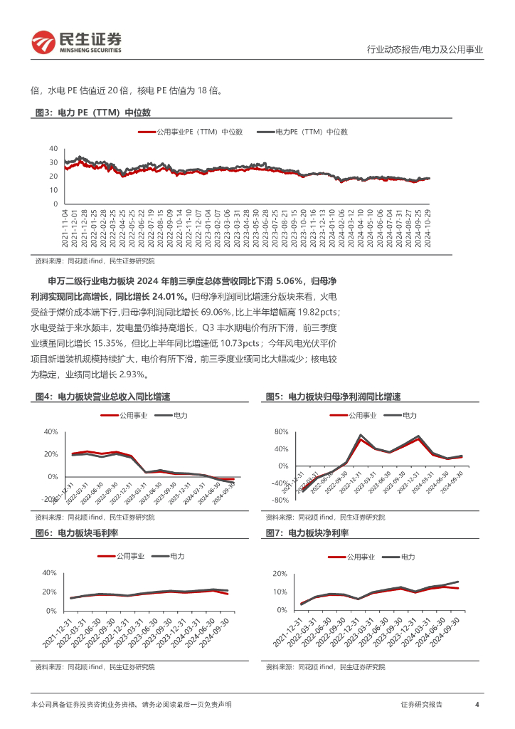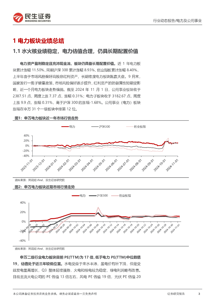 民生证券:电力行业2024年三季报业绩总结:水电强势,火核稳健,绿电改善.pdf