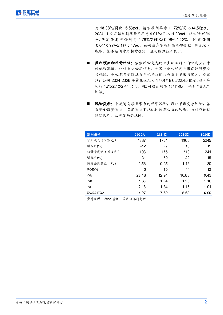 国海证券:依依股份(001206)-2024年中报业绩点评:2024H1业绩表现靓丽,积极拓展海外客户景气向上.pdf