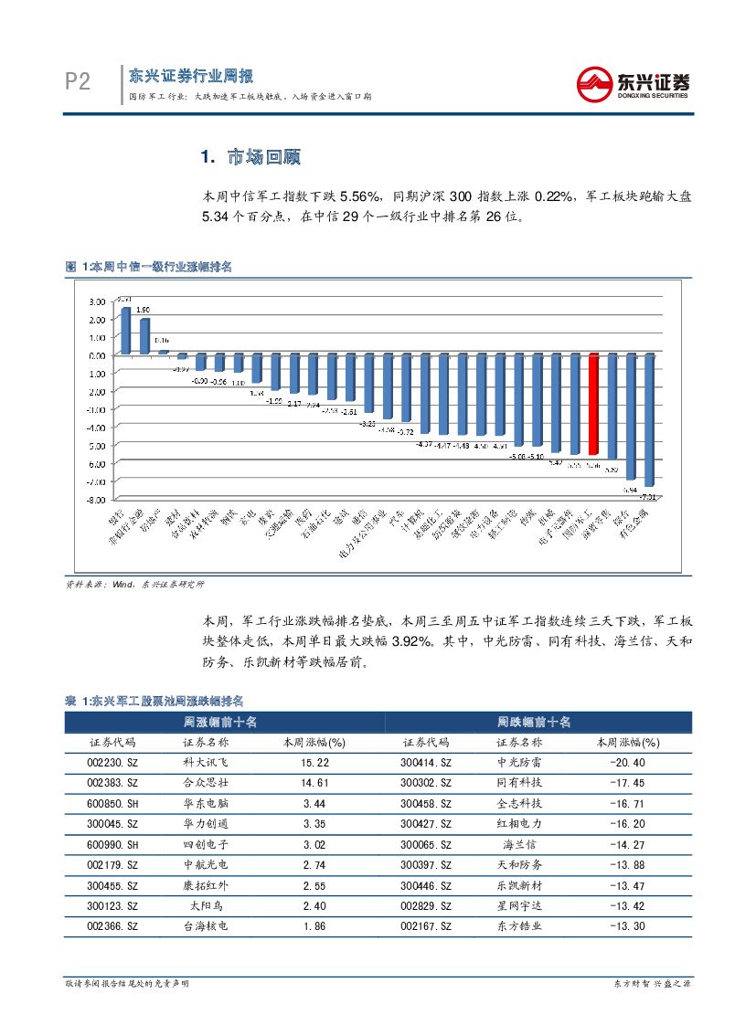 东兴证券:国防军工行业周报:大跌加速军工板块触底,入场资金进入窗口期.pdf