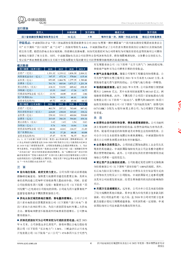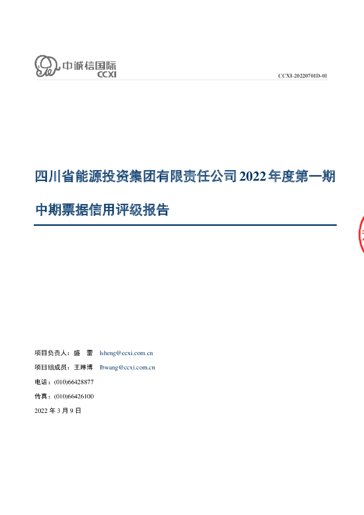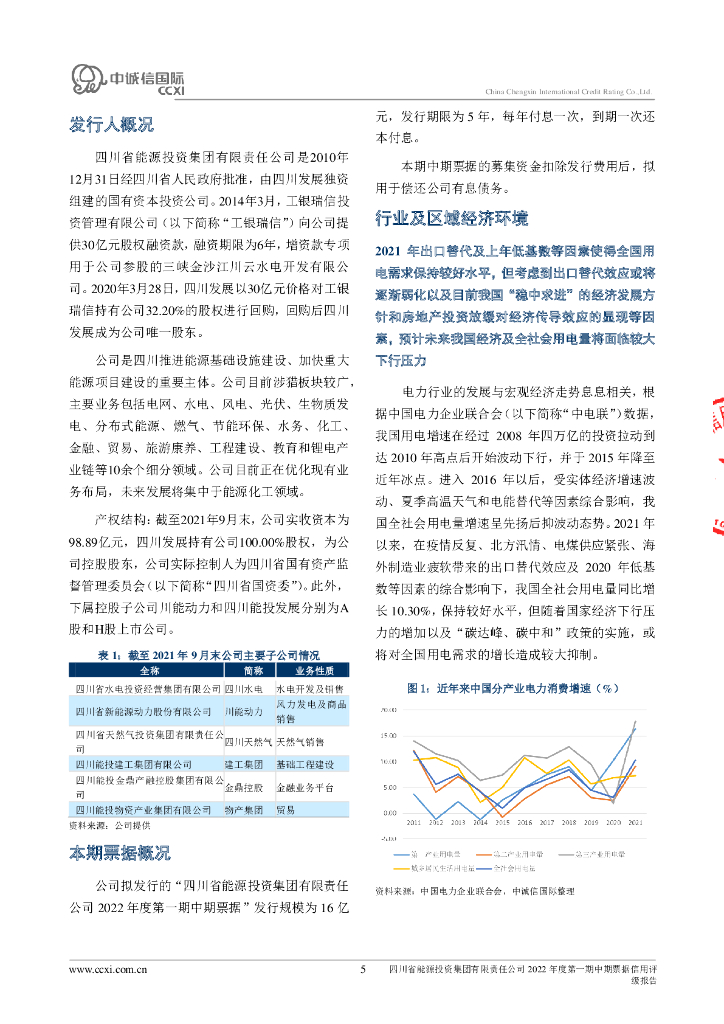 中诚信:四川省能源投资集团有限责任公司2022年度第一期中期票据信用评级报告和跟踪评级安排.pdf