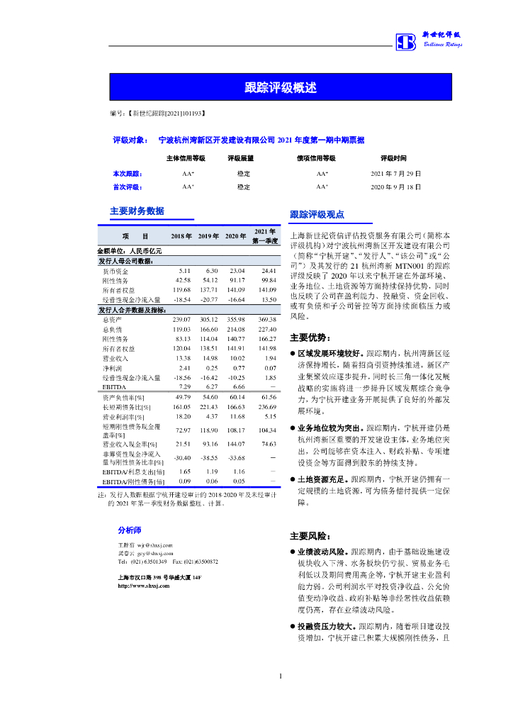 新世纪:宁波杭州湾新区开发建设有限公司跟踪评级报告.pdf