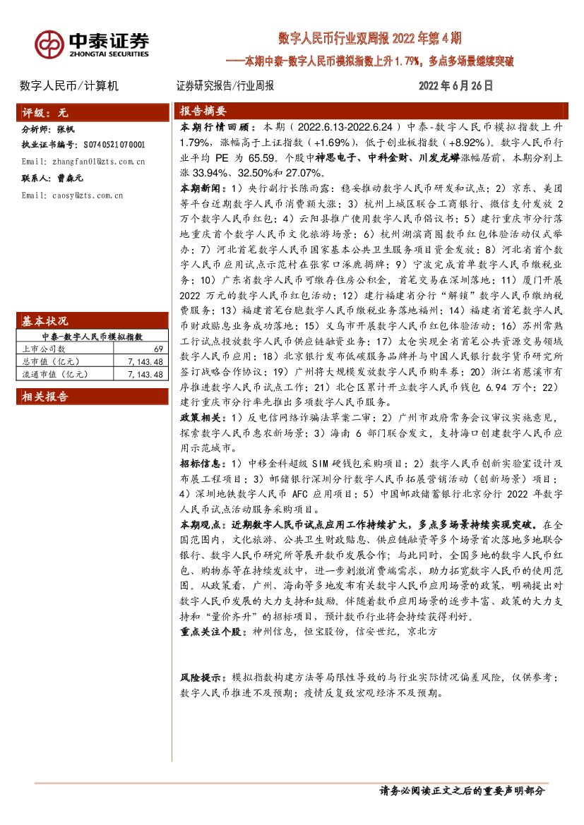 中泰证券:计算机数字人民币行业双周报2022年第4期:本期中泰-数字人民币模拟指数上升1.79%,多点多场景继续突破.pdf