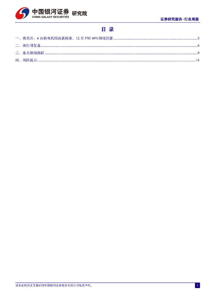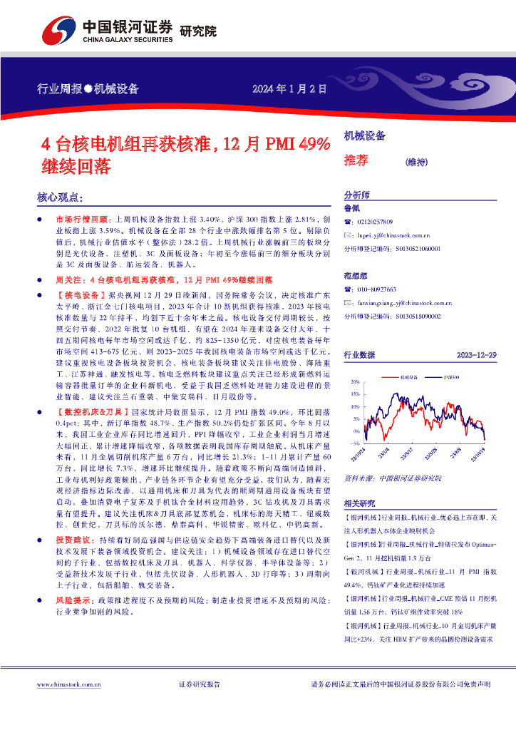 中国银河:机械设备行业周报:4台核电机组再获核准,12月PMI49%继续回落.pdf