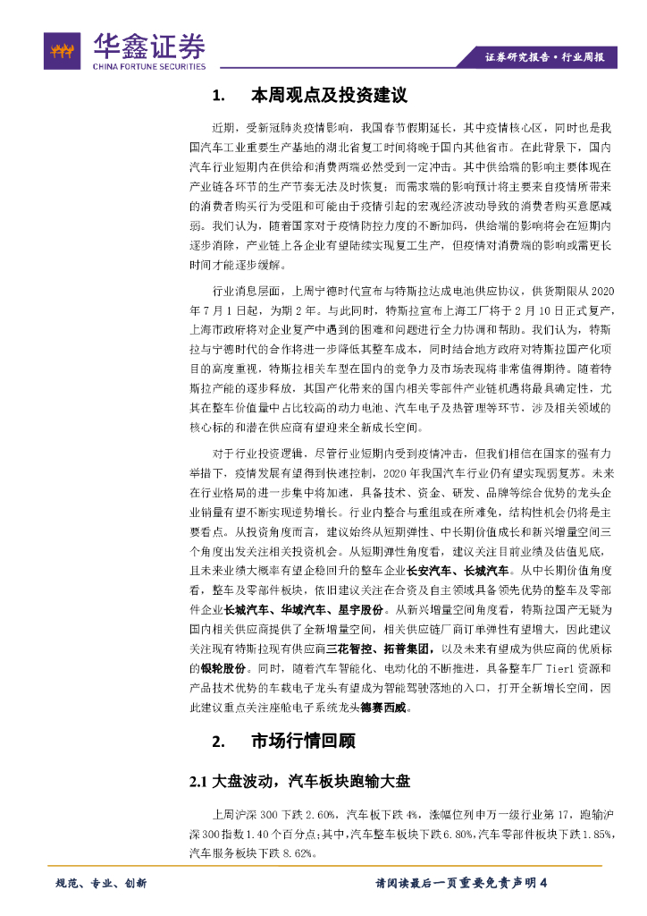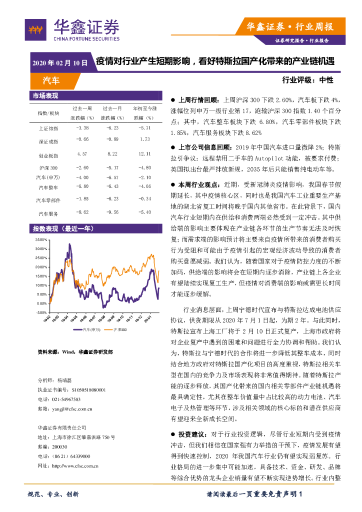 华鑫证券:汽车行业周报:疫情对行业产生短期影响,看好特斯拉国产化带来的产业链机遇.pdf