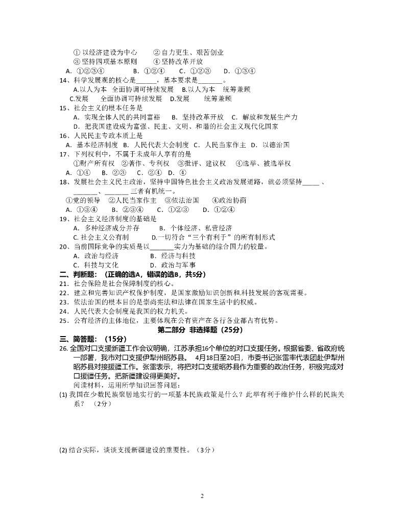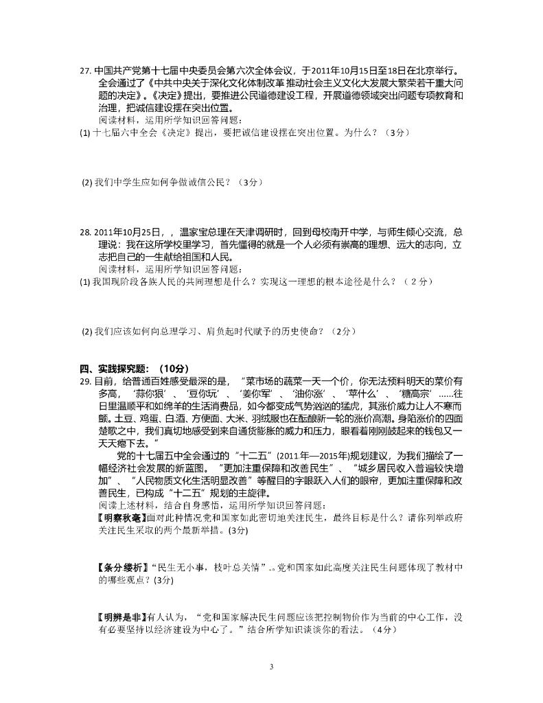 九年级政治综合检测试题(11) .doc