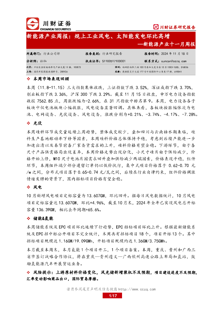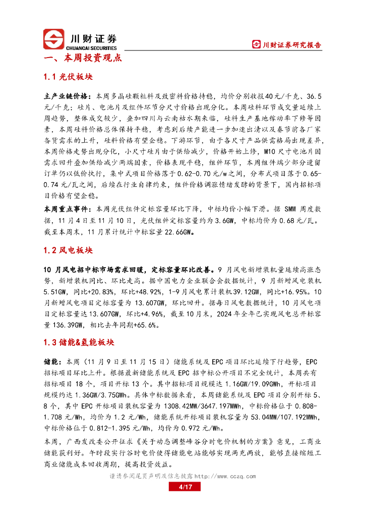 川财证券:新能源产业十一月周报:新能源产业周报:规上工业风电、太阳能发电环比高增.pdf