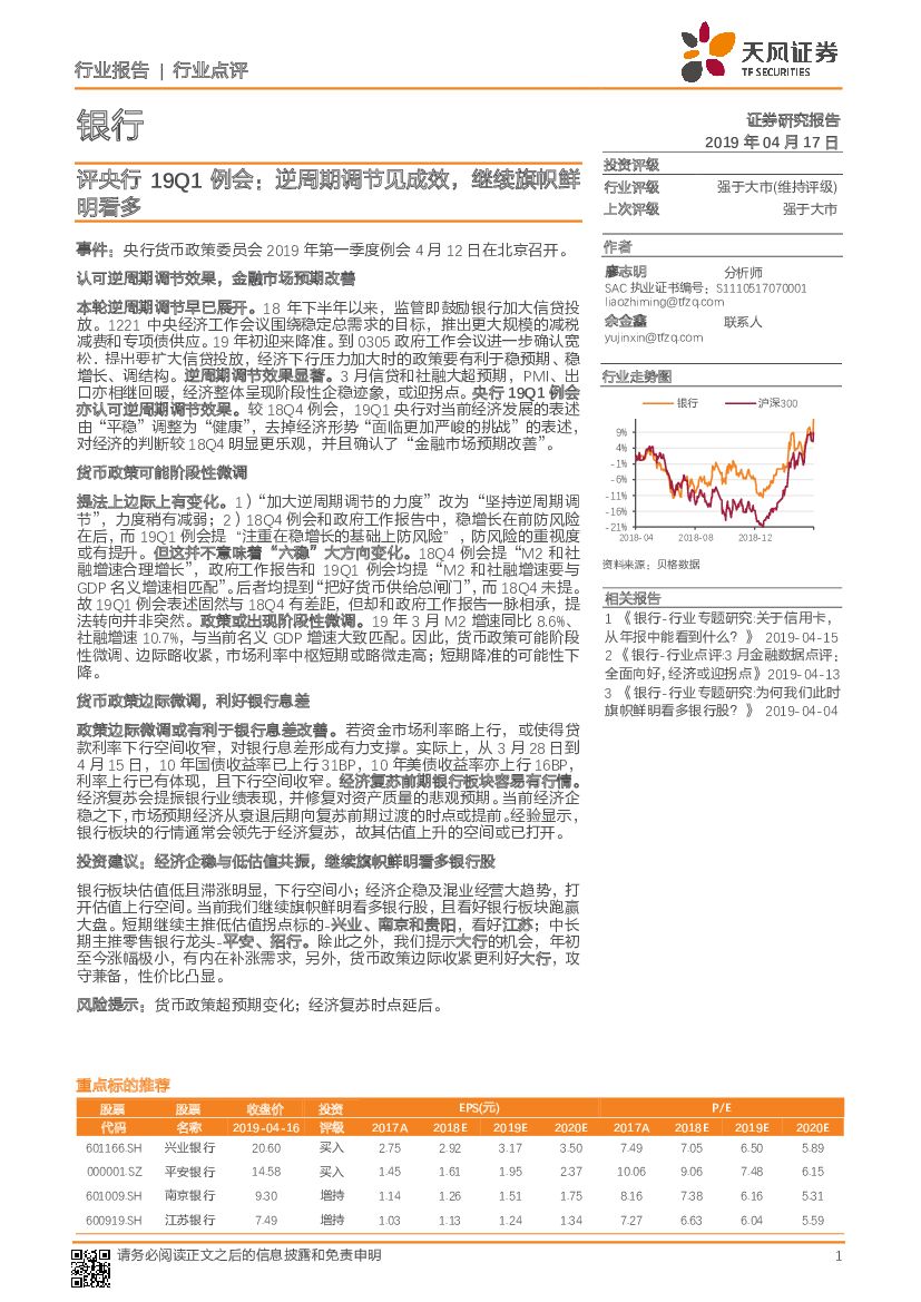 天风证券:银行行业点评:评央行19Q1例会:逆周期调节见成效,继续旗帜鲜明看多.pdf