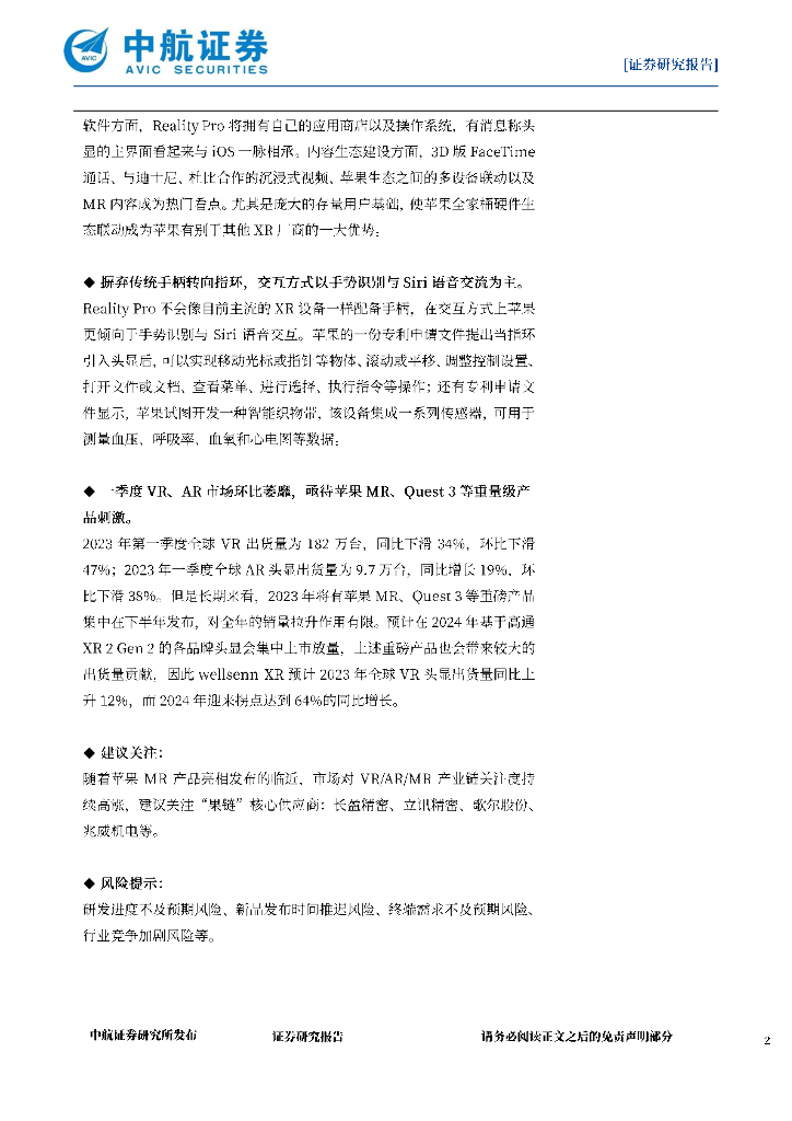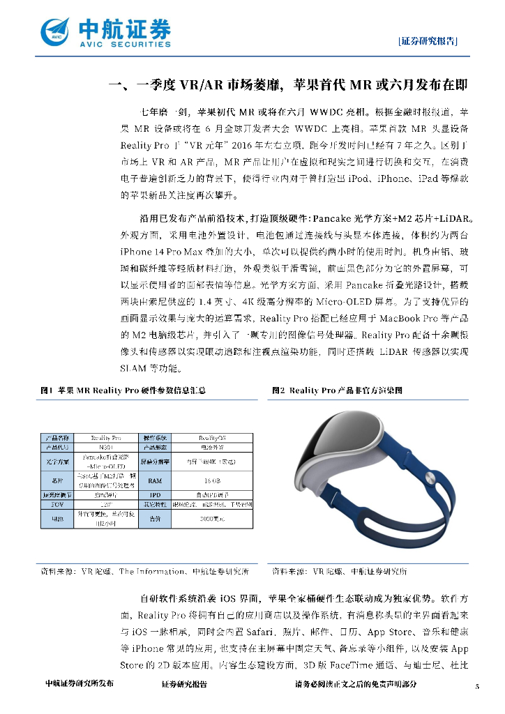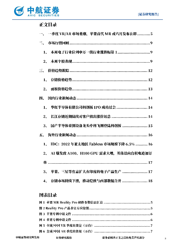 中航证券:电子行业周报:一季度VR/AR市场萎靡,苹果首代MR或六月发布在即.pdf
