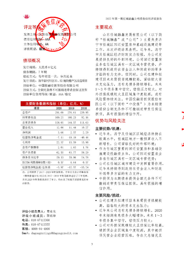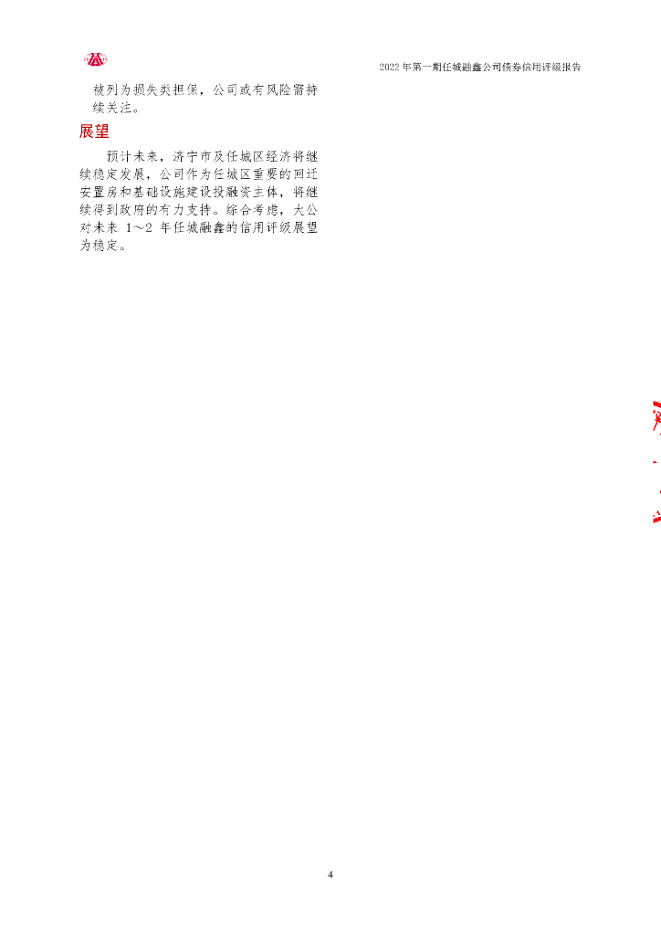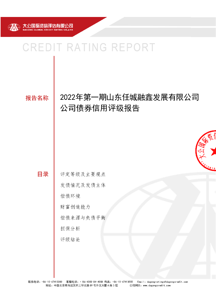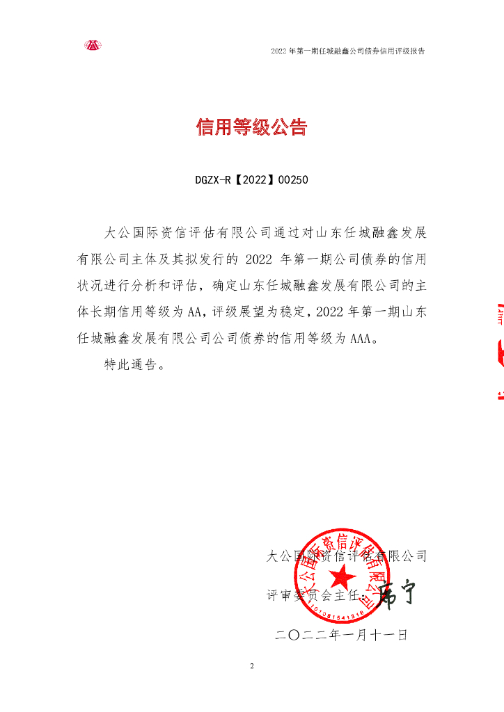 大公:2022年第一期山东任城融鑫发展有限公司公司债券评级报告.pdf