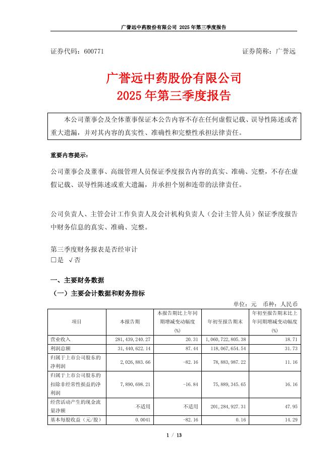 600771-广誉远:广誉远中药股份有限公司2025年第三季度报告.pdf