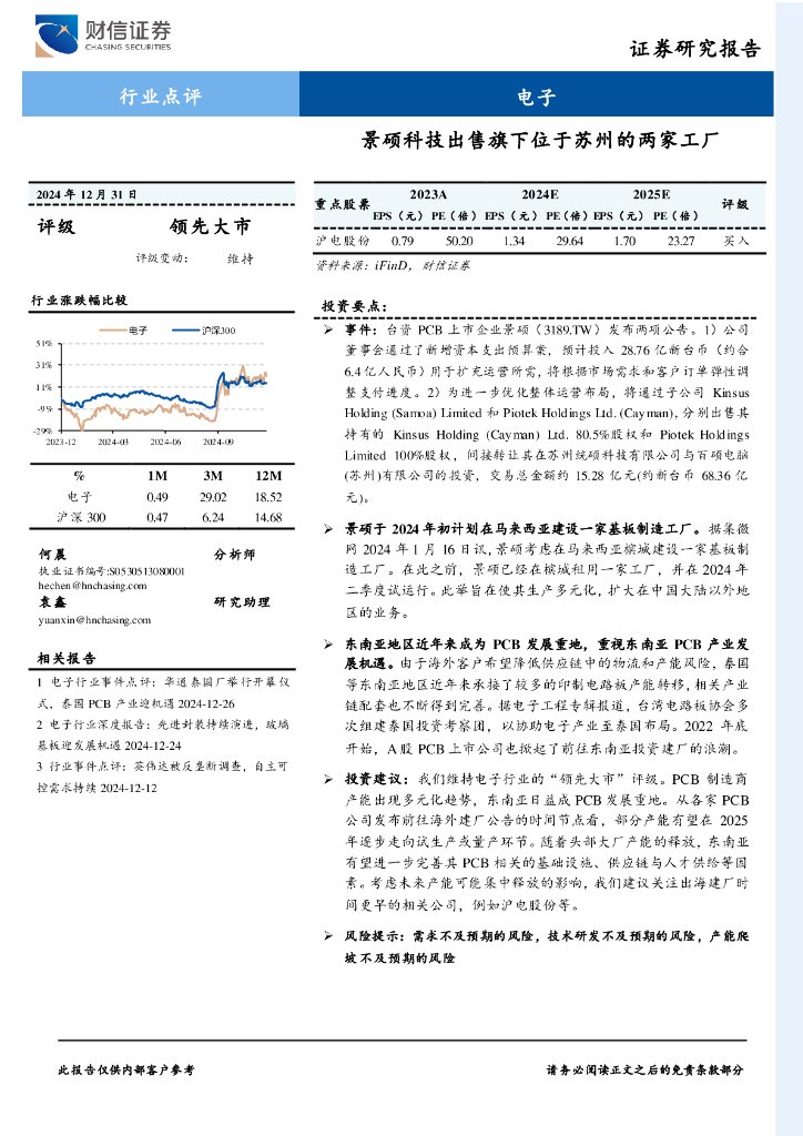 财信证券:电子行业点评:景硕科技出售旗下位于苏州的两家工厂.pdf