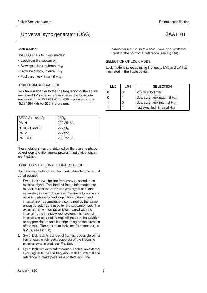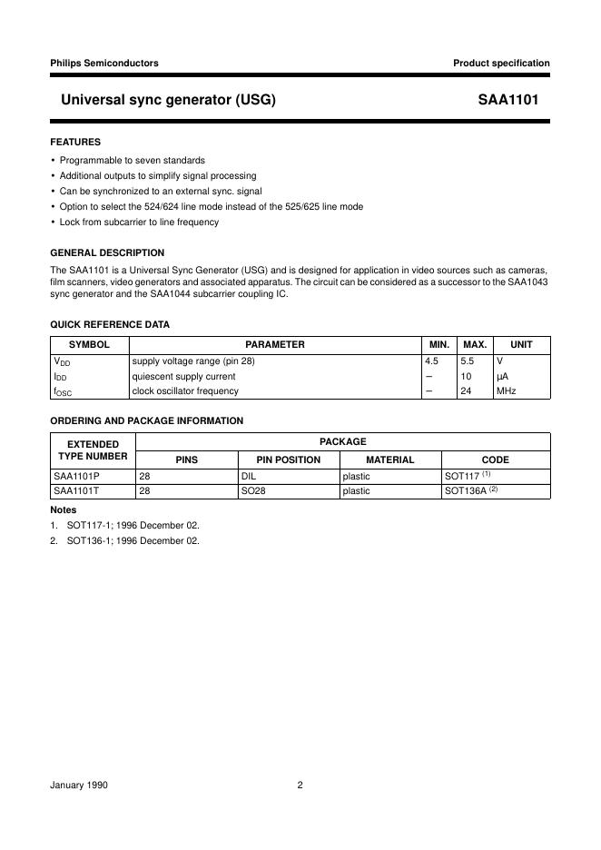 philips SAA1101 Universal sync generator (USG) 数据手册.pdf