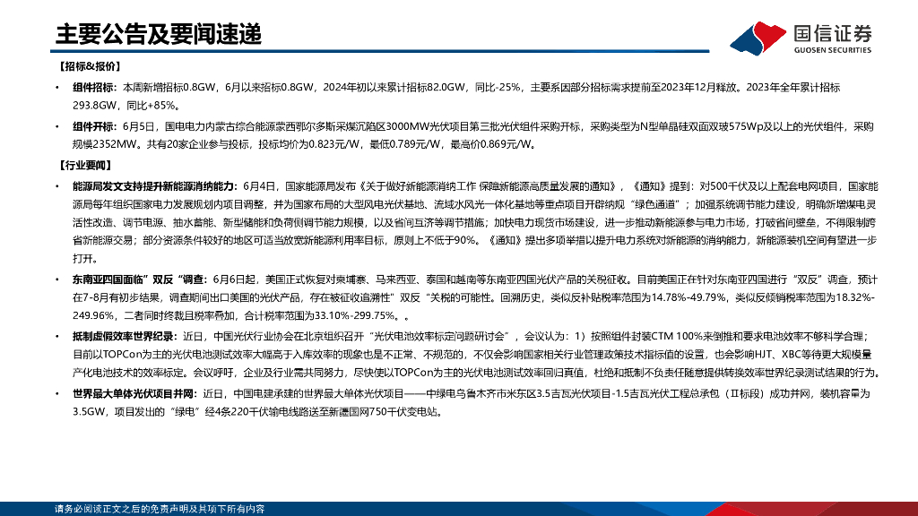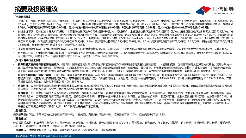 国信证券:光伏产业链周评(6月第1周):辅材端价格全面下行,协鑫首个海外颗粒硅项目或将落地阿联酋.pdf