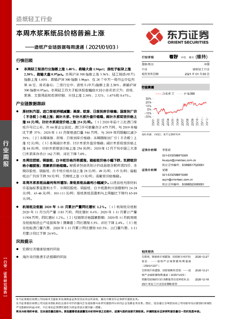 东方证券:造纸产业链数据每周速递:本周木浆系纸品价格普遍上涨.pdf