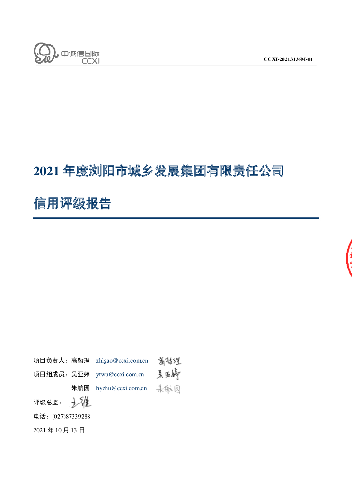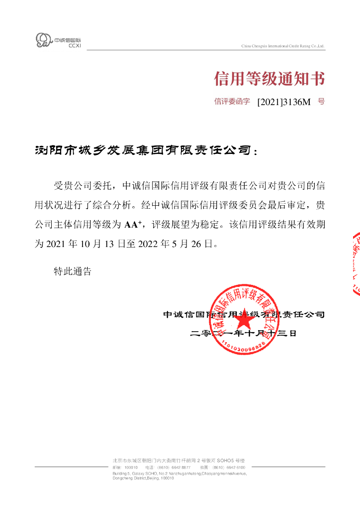 中诚信:浏阳市城乡发展集团有限责任公司主体信用评级报告及跟踪评级安排.pdf
