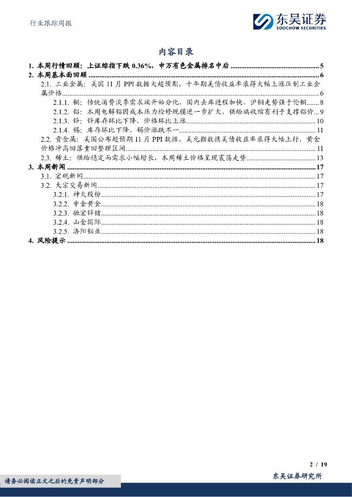 东吴证券:有色金属行业跟踪周报:美元指数携美债收益率录得大幅上行,黄金价格冲高回落重回整理区间.pdf