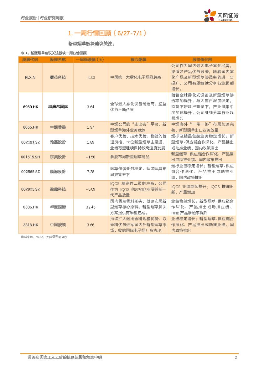 天风证券:新兴产业行业研究周报:奥驰亚以1亿美元收购加热不燃烧品牌Poda,截至6月底共35家相关企业取得烟草专卖生产企业许可证.pdf