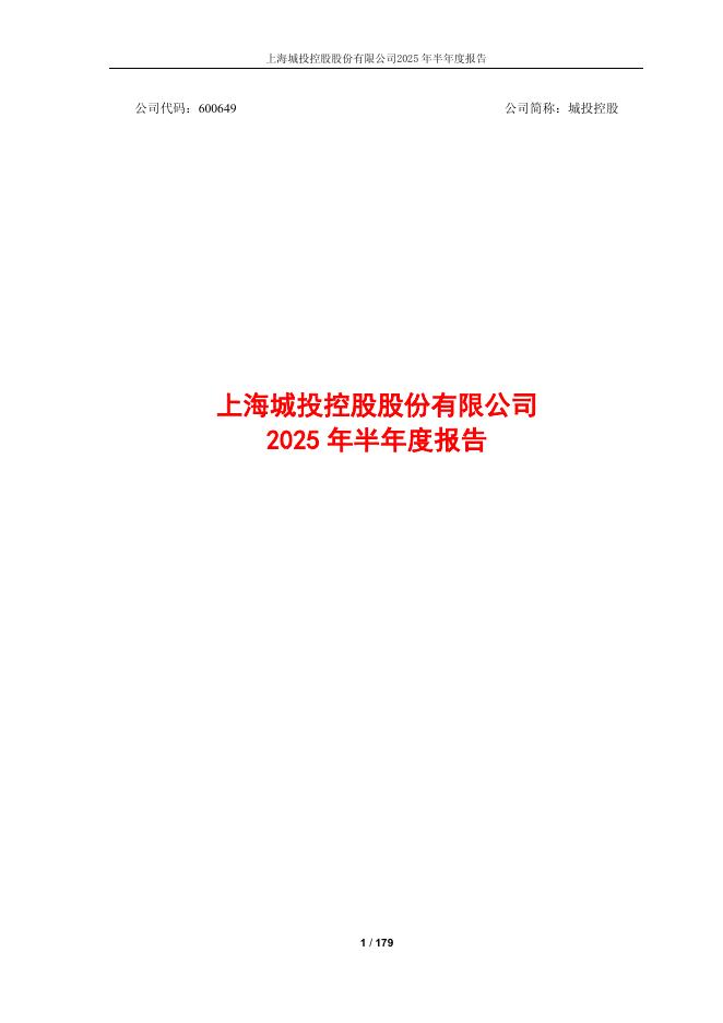 600649-城投控股:上海城投控股股份有限公司2025年半年度报告.pdf