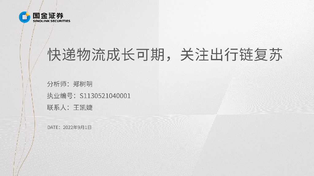 国金证券:交通运输:掘金·中报业绩总结:快递物流成长可期,关注出行链复苏.pdf