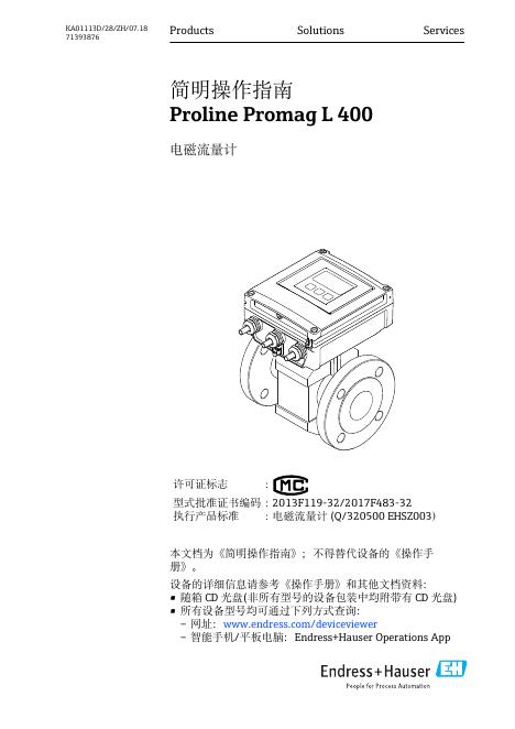 Proline Promag L 400电磁流量计简明操作指南.pdf
