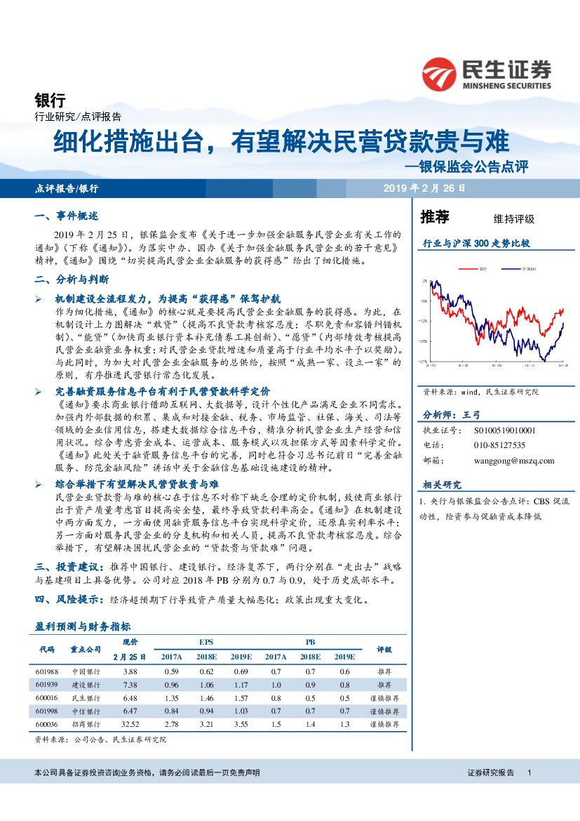 民生证券:银行行业研究:银保监会公告点评:细化措施出台,有望解决民营贷款贵与难.pdf