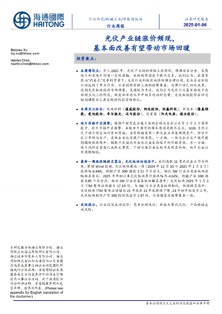 海通国际:新能源板块行业周报:光伏产业链涨价频现,基本面改善有望带动市场回暖.pdf